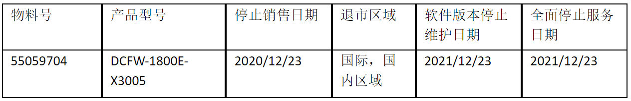北京神州數碼leyu.樂魚信息技術有限公司正式通知您, 以上DCFW-1800E-X3005下一代防火墻(55059704)將于20201223號停止接收新的訂單(具體日期見上表),不再供貨。給您帶來的不便,敬請原諒。